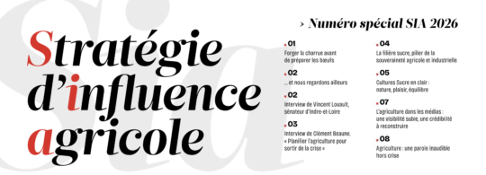 A l’occasion du Salon International de l’Agriculture, Comfluence décrypte les grands défis de communication du monde agricole. Pour cette édition, le magazine Stratégie d’Influence Agricole – SIA 2026 se penche sur le rôle de l’influence agricole à l’approche de la prochaine élection présidentielle et donne la parole à des personnalités qualifiées, parmi lesquelles le Haut-Commissaire à la Stratégie et au Plan et le sénateur d’Indre-et-Loire.